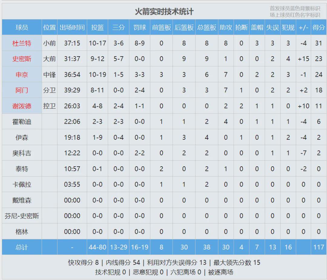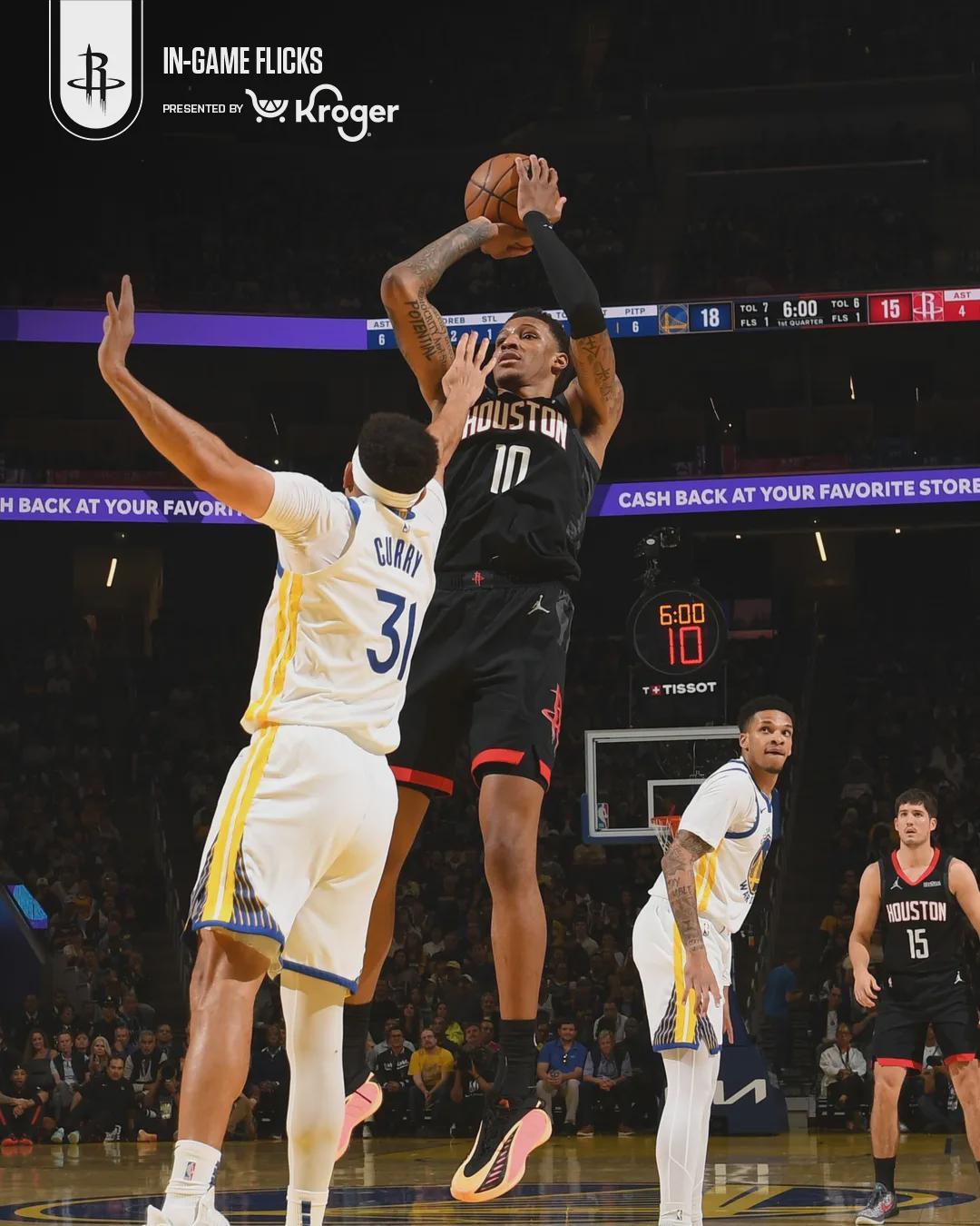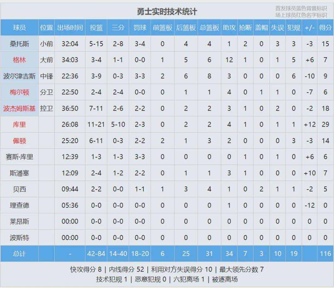 波尔津吉斯沦为申京的玩具,上半场4中1仅得4分4篮板2助攻,其余数据都是0。申京上半场10中6,砍下13分4篮板2助攻1盖帽。火箭第一节三分球5中1,第二节三分球10中5。火箭上半场篮板球22-14碾压勇士,前场篮板6-3!