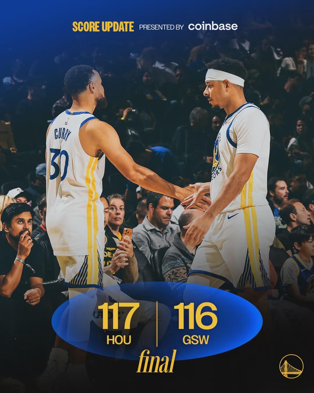 杜兰特送出妙传,申京抛投得手,最后11秒火箭再次领先。勇士还有足够的时间,但科尔没有叫暂停。库里最后一投不中,火箭117-116险胜勇士,申京完成准绝杀。杜兰特31分8板8助3帽、申京24分6板7助2帽、小贾23分9板。