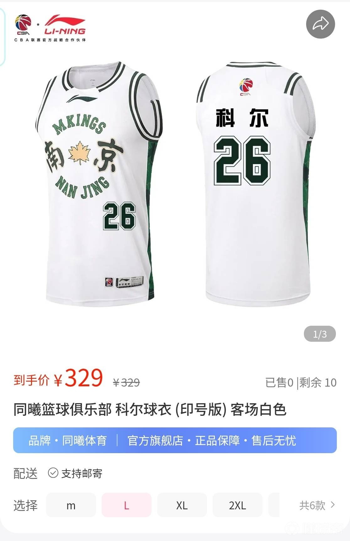 北京时间4月7日,南京同曦在官方商城上架了J.Cole的主客场球衣,售价皆为329元/件,与其他球员的印号版球衣一致。