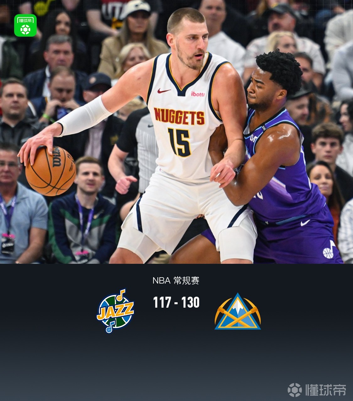 第四节爵士肯尼迪-钱德勒拿下9分,掘金贾马尔-穆雷拿下11分,最终爵士117-130不敌掘金