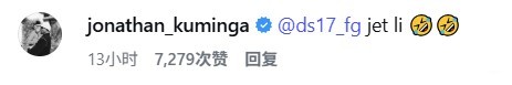 北京时间4月3日,勇士111-118不敌骑士。在比赛中,施罗德上演了一脚“雷欧飞踢”,库明加在评论区对此表示:你是李连杰吗?比赛第四节,施罗德在追防时高高跃起,一脚踹翻了上篮的勇士球员克莱尔,随后他和追梦发生冲突,最终被判罚一级恶意犯规。当媒体对这一幕进行报道时,施罗德的前队友库明加也现身评论区,他对此调侃:“你李连杰啊?”相关阅读【雷欧飞踢!施罗德追防时一脚踢翻克莱尔,被吹罚一级恶犯】