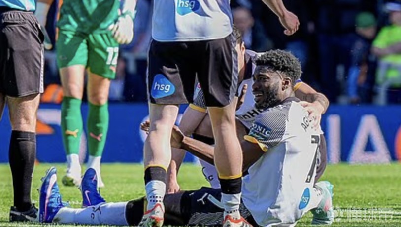 25岁的帕特里克-阿杰芒在代表德比郡出战时受伤,最终哭着被担架抬离场。