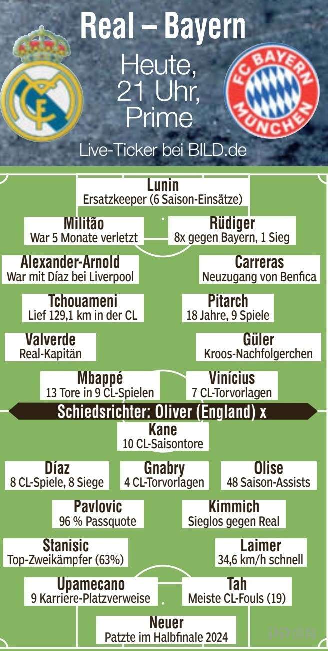 皇马将在本轮欧冠八强战首回合主场迎战拜仁,《图片报》也预测了双方首发阵容。皇马(442):卢宁/阿诺德、米利唐、吕迪格、卡雷拉斯/巴尔韦德、琼阿梅尼、皮塔奇、居莱尔/姆巴佩、维尼修斯拜仁(4231):诺伊尔/斯坦尼西奇、于帕梅卡诺、塔、莱默尔/帕夫洛维奇、基米希/迪亚斯、格纳布里、奥利塞/凯恩 责任编辑: 体育24小时热点