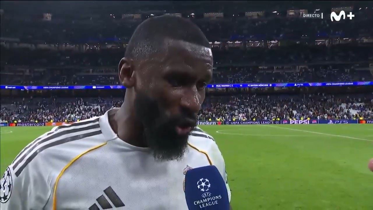 欧冠1/4决赛首回合,皇马在主场1-2负于拜仁,后卫吕迪格赛后接受了Movistar+的采访。