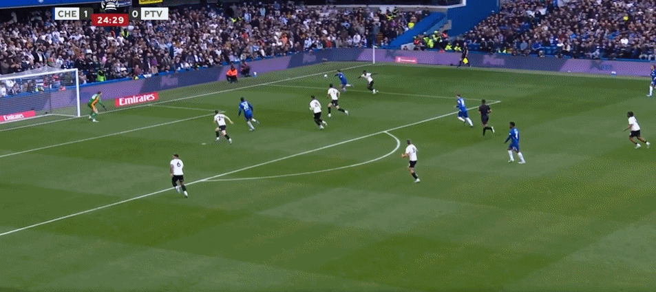 北京时间4月5日00:15,足总杯1/4决赛,切尔西主场迎战英甲球队维尔港。上半场,哈托禁区内抽射破门,内托助攻若昂-佩德罗扩大比分,半场结束前,帕尔默门前补射造成对方球员自摆乌龙,半场战罢,切尔西3-0领先维尔港。