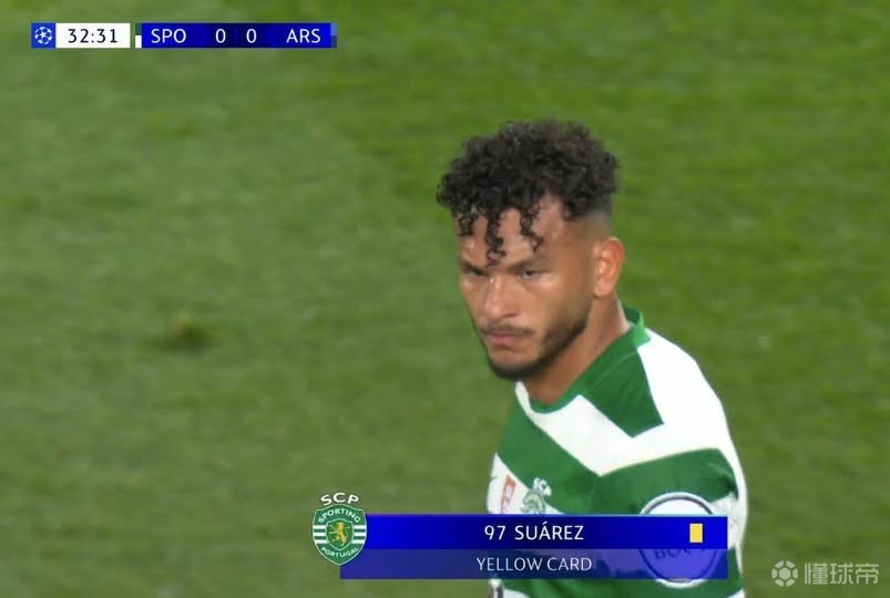 比赛进行到第32分钟时,欧足联在转播画面中打出提示,显示苏亚雷斯也被出示黄牌,并将因此缺席葡萄牙体育的下一场比赛。