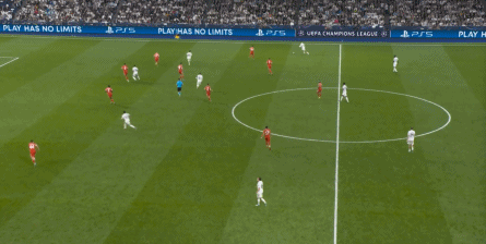 于是在第18分钟,在经历了对手的连续施压过后,在赫伊森和居莱尔的帮助下,皇马打出了他们想要的进攻,这是他们本场第一次反击,也是相对威胁较大的反击之一: