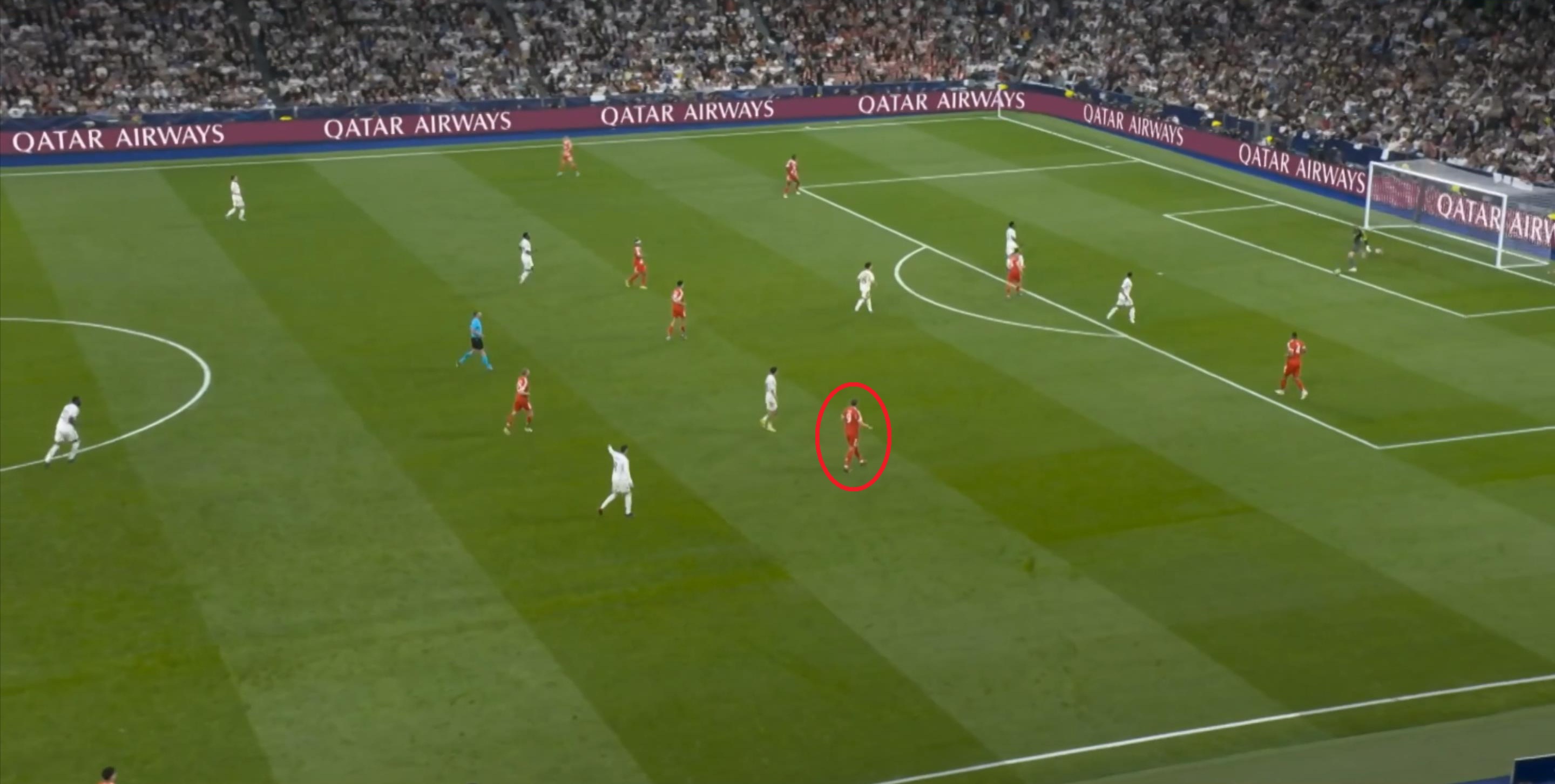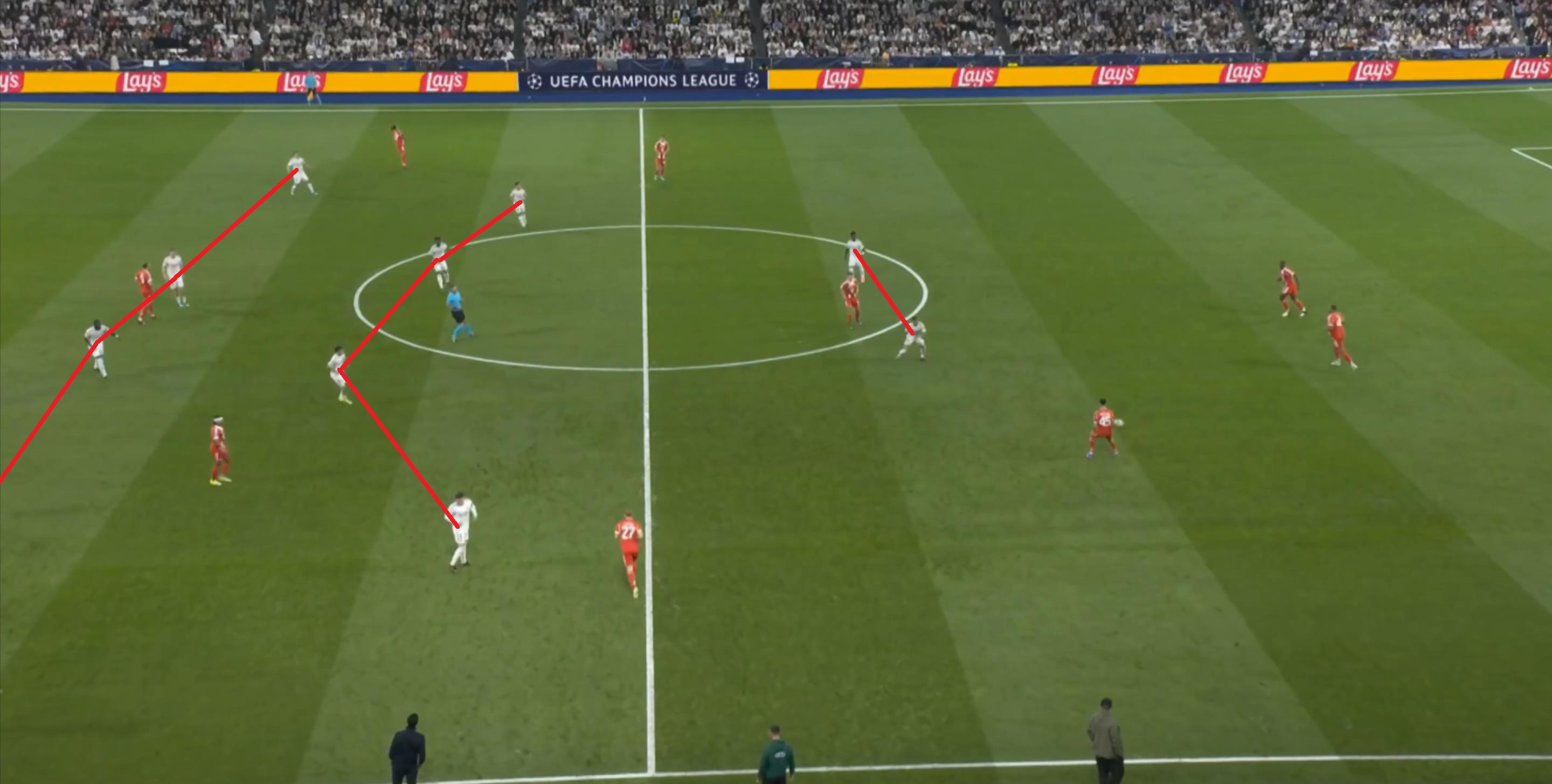 从这个角度来说,皇马已经展现出了他们的战术思路,打反击就是主轴,但这个主轴应该是零星出现的间奏才对,除此之外的大部分时间,他们其实都要处于无球的状态当中,而且要经受住拜仁的进攻。