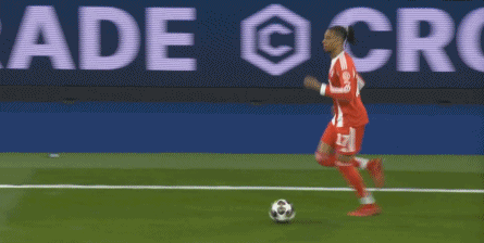 本场比赛,奥利塞触球82次,是拜仁前场四人中触球次数最多的,球队的进攻方向自然在朝他这一侧大幅度倾斜,但在上半场的开局阶段结束之后,他这一侧的成功进攻其实就是两次由逆足送出的传中: