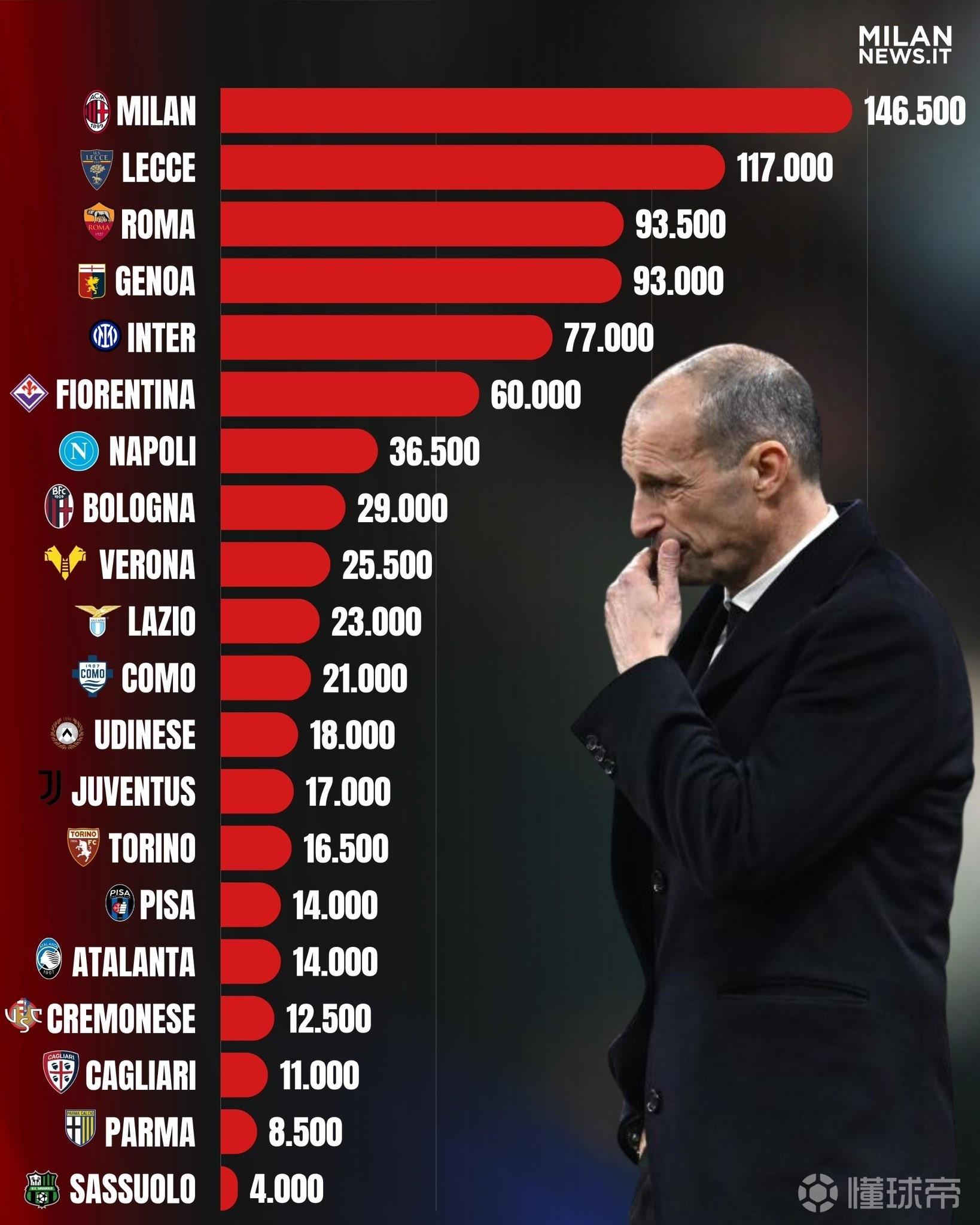 1. AC米兰 14.65万欧元
