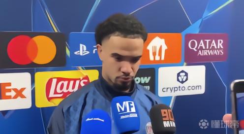 欧冠1/4决赛首回合,巴黎主场2-0战胜利物浦,扎伊尔-埃梅里赛后在混采区接受了采访。