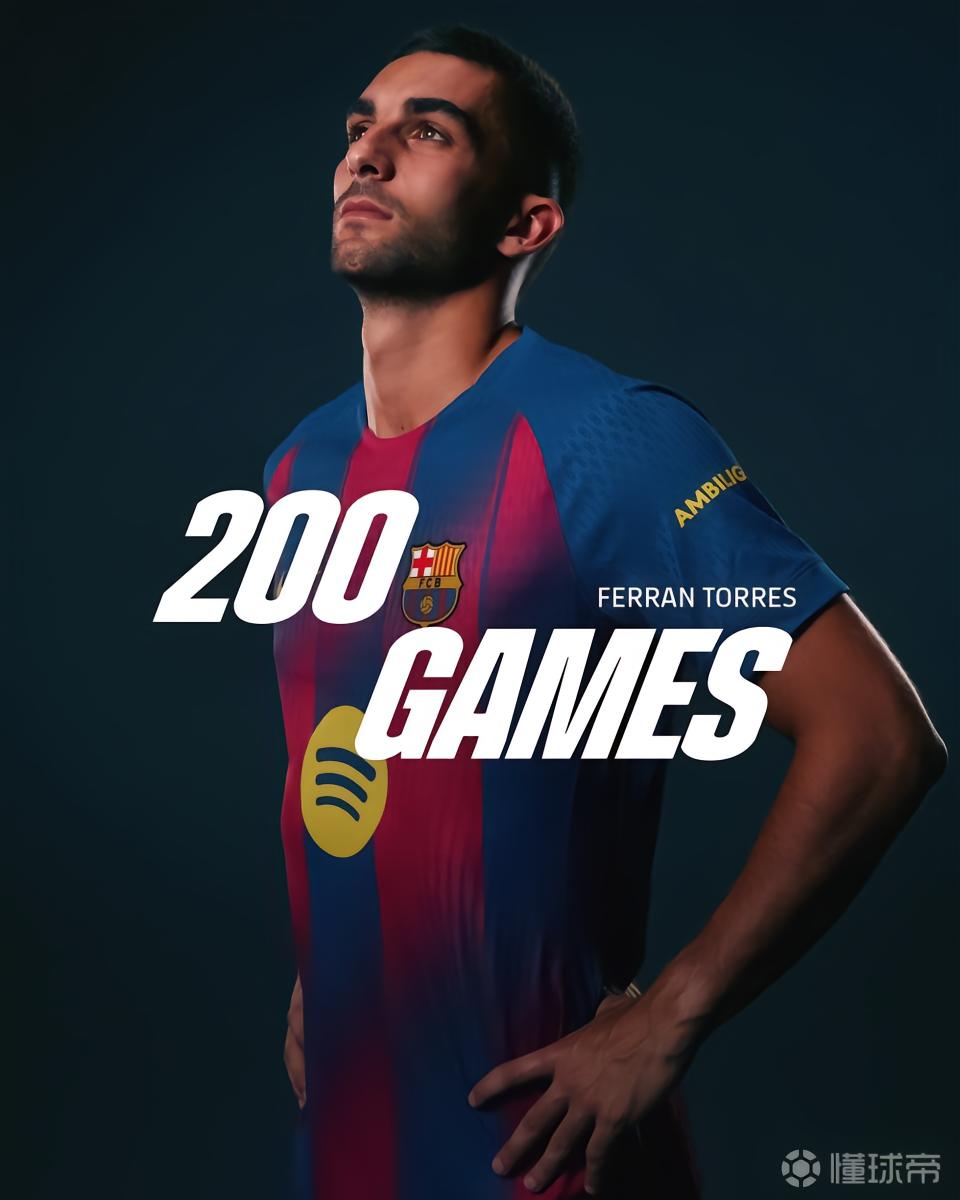 北京时间4月9日,在欧冠1/4决赛首回合巴塞罗那主场与马德里竞技的比赛中,费兰-托雷斯第73分钟替补拉什福德出场,并就此迎来了自己巴萨生涯的里程碑一战。根据巴萨官方的统计,本场比赛是现年26岁的费兰-托雷斯自2022年1月加盟以来代表球队出战的第200场正式比赛,期间他为巴萨打进60球并送出21次助攻,帮助球队拿到了2次西甲、1次国王杯以及3次西班牙超级杯的冠军。