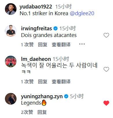 近日,前中国国脚于大宝在个人社交平台晒出与韩国传奇前锋李同国的合影,并配文 “韩国头号前锋”,引发球迷热议。评论区中,现役国脚张玉宁以 “Legends” 配火焰表情留言,向两位足坛名宿致敬。此外还有多国球迷评论,巴西球迷盛赞 “两位伟大的前锋”,而韩国球迷则是打趣“绿色衣服很适合他们”。于大宝去年在北京国安完成退役仪式,正式结束球员生涯,转型投身青训事业,现任U23国足助理教练。李同国则是K联赛历史级射手,曾多次在亚冠、国家队赛事中与中国球队交手,是中国球迷最熟悉的韩国前锋之一。