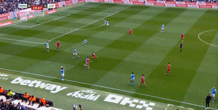 相较于此,还是寄希望于不要被打花更为现实,因为在第57分钟,曼城恰恰是抓住赫拉芬贝赫的上前逼抢,通过渗透逐步打穿了利物浦的中场,从而打出了第四球: